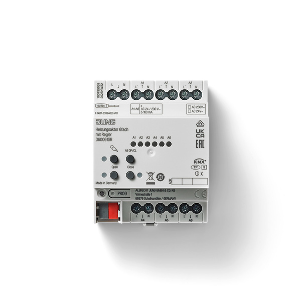 Der JUNG KNX Heizungsaktor 6-fach mit KNX Data Secure ermöglicht die zentrale Steuerung von bis zu sechs unabhängigen Heiz- oder Kühlzonen. Jede Zone kann individuell auf die gewünschte Temperatur geregelt werden. Der integrierte Regler ermöglicht die individuelle Einstellung und Überwachung der Temperatur in den einzelnen Zonen. Der Aktor ist ideal für den Einsatz in Gewerbe- und Wohngebäuden, um Heiz- und Kühlvorgänge effizienter und komfortabler zu gestalten. Durch die Möglichkeit der individuellen Zonenregelung kann der Energieverbrauch optimiert werden. Der JUNG Heizungsaktor 6-fach ist updatefähig über die JUNG KNX Service App.